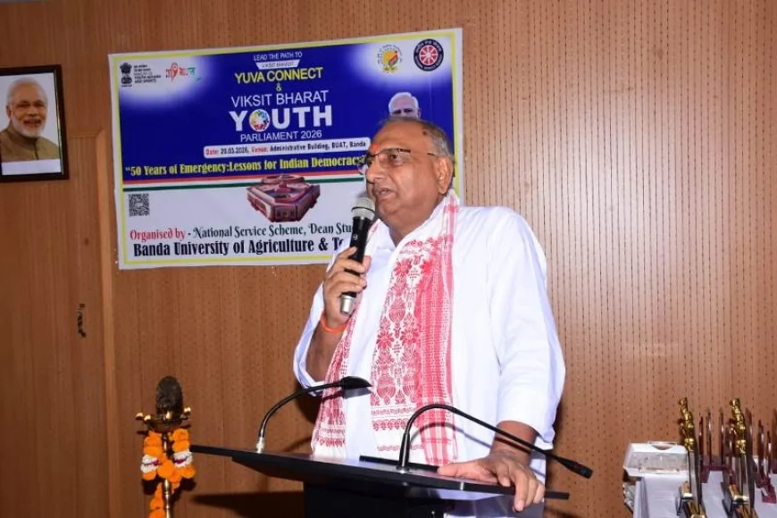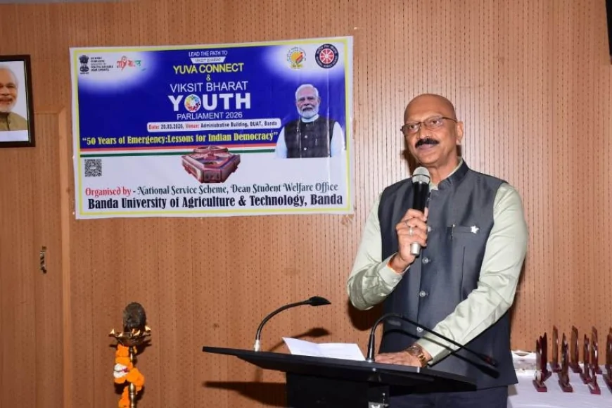 बांदा। बांदा कृषि एवं प्रौद्योगिक विश्वविद्यालय के परिसर में शुक्रवार को 'विकसित भारत यूथ पार्लियामेंट 2026' का भव्य आयोजन किया गया। इस बौद्धिक मंच पर जिले के विभिन्न महाविद्यालयों से आए 150 से अधिक छात्र-छात्राओं ने अपनी तार्किक क्षमता और लोकतांत्रिक समझ का लोहा मनवाया। दीप प्रज्वलन के साथ शुरू हुए इस कार्यक्रम ने युवाओं को राष्ट्र निर्माण की मुख्य धारा से जोड़ने का काम किया।