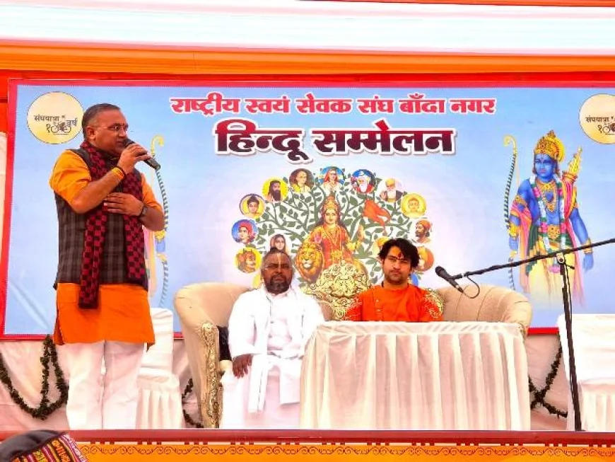 बांदा। राष्ट्रीय स्वयंसेवक संघ, बांदा द्वारा आयोजित भव्य हिन्दू सम्मेलन का आयोजन आज दिनांक 19 जनवरी, 2026 को चिल्ला रोड स्थित होटल रामदा में संपन्न हुआ, जिसमें हजारों की संख्या में स्वयंसेवक बंधुओं ने सहभागिता की। कार्यक्रम में मुख्य अतिथि के रूप में पूज्य धीरेन्द्र कृष्ण शास्त्री तथा विशिष्ट अतिथि के रूप में प्रांत प्रचारक श्रीराम जी की गरिमामयी उपस्थिति रही।