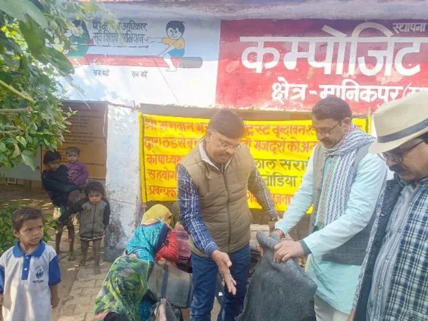 श्री भगवान भजनाश्रम वृंदावन शाखा चित्रकूट ने पाठा के चूल्ही गांव में बांटे कंबल और खाद्यान्न सामग्री