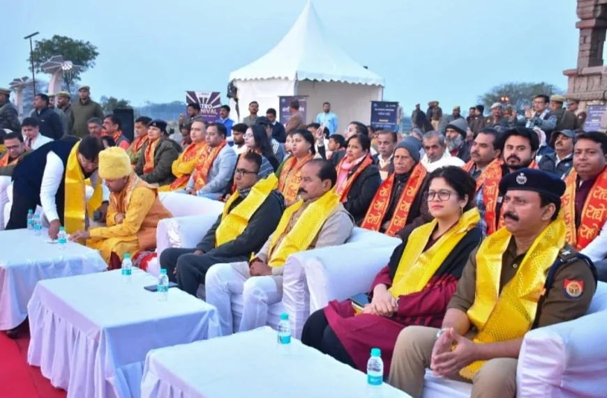 महोबा। जनपद महोबा के स्थापना दिवस 11 फरवरी की प्रातः साढ़े छह बजे रहेलिया स्थित प्राचीन सूर्य मंदिर परिसर में सूर्य महोत्सव-2026 का भव्य एवं ऐतिहासिक शुभारम्भ सूर्य आरती एवं अर्घ्य अर्पण के साथ किया गया। यह महोत्सव 11 से 17 फरवरी तक आयोजित किया जाएगा।