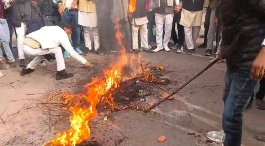 बांग्लादेश में हिंदुओं पर कथित अत्याचार के विरोध में बाँदा में प्रदर्शन, जिहादी संगठन का पुतला दहन