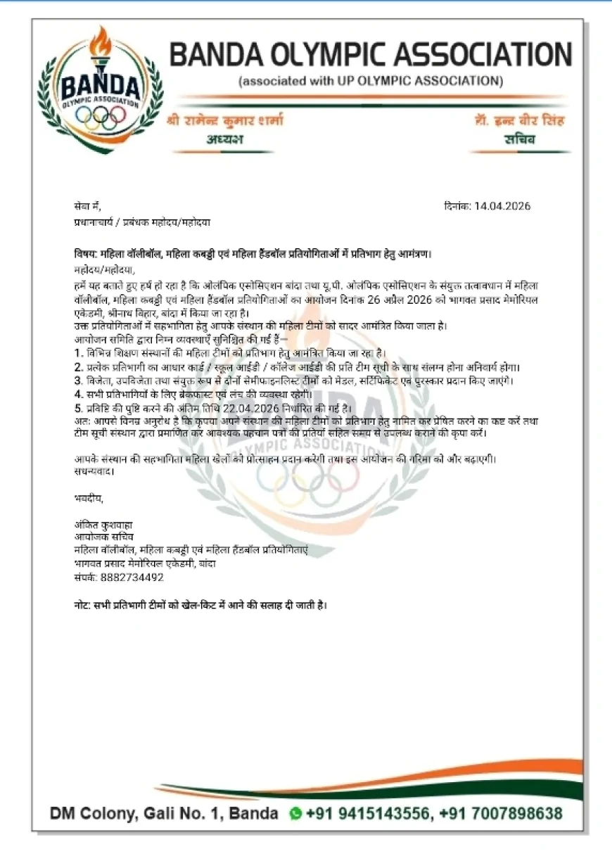 बांदा ओलंपिक खेलों में महिला प्रतियोगिताओं का आयोजन 26 अप्रैल को, बेटियों को मिलेगा प्रतिभा दिखाने का मंच