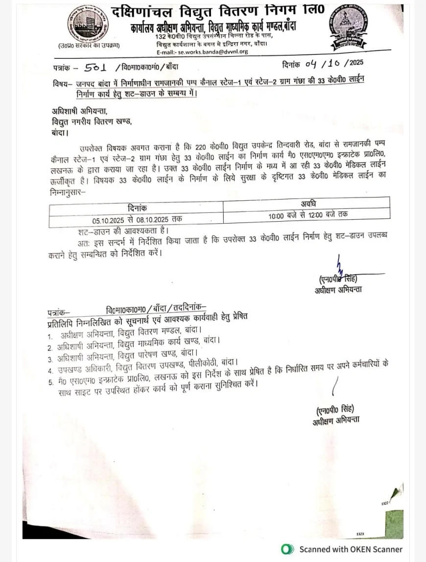 5 से 8 अक्टूबर तक क्यों रहेगा बाँदा में शटडाउन? जानिए पूरा कारण